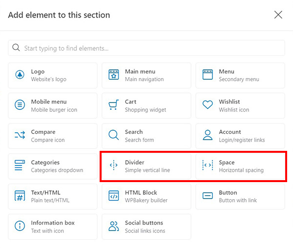 Implicit, toate elementele din constructorul de header au un margin de 10 pixeli în stânga și în dreapta. În total, între elemente există un spațiu de 20 de pixeli, pentru un aspect curat.